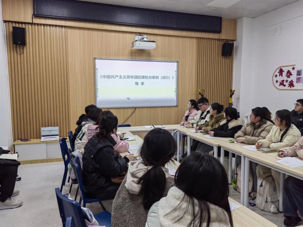 会议伊始,与会成员观看了团纪处分条例导学微课。视频逐条解读《条例》中关于政治纪律、组织纪律、廉洁纪律等六大类处分规定,重点结合学生干部履职、网络言行规范等校园场景展开警示教育。