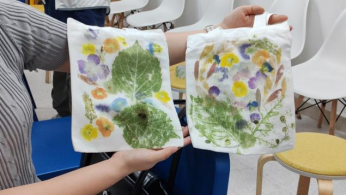 自由创作时段成为展现个性的舞台。在轻柔的音乐氛围中,同学们化身自然艺术家:有人以太阳花花瓣点缀出春日浪漫,有人尝试紫苏叶与绣球的叠色创作,更有同学创新地结合扎染技法,打造出独一无二的纹理效果。活动室一时化身为创意工坊,“咚咚”的敲打声此起彼伏,仿佛奏响了一曲春天的交响乐。