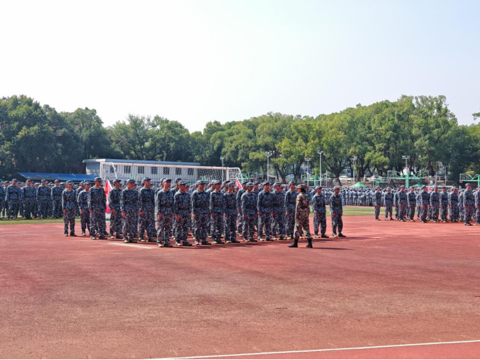 2025级本科生身着迷彩服,在麓南校区运动场集合,开启了如火如荼的新生军训。