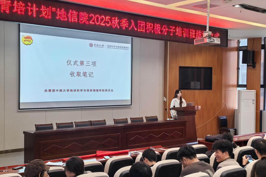 2025秋季入团积极分子培训会结课仪式暨团课实践活动于11月12日下午顺利开展。结课仪式于地科楼127举行,全体2025秋季入团积极分子参会,仪式由院团委组织部黄蘭主持。
