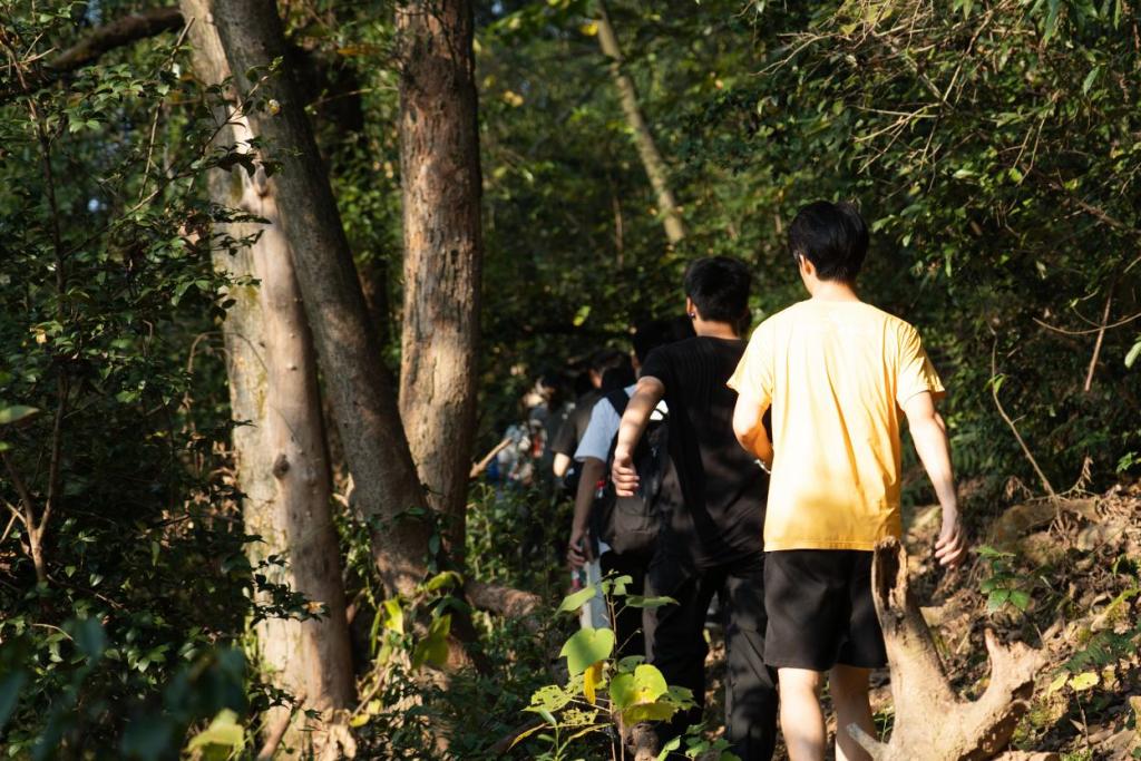 登山途中,大家结伴而行,沿着蜿蜒山路奋力攀登。岳麓山的层林尽染与同学们的青春身影交相辉映,成为秋日里一道动人的风景线。同学们用脚步征服陡坡,用汗水诠释热爱,在挑战中收获勇气与成长,也在团队协作中深化了友谊,让“心越线”不只是一条徒步路线,更成为了青春成长的“试炼线”。