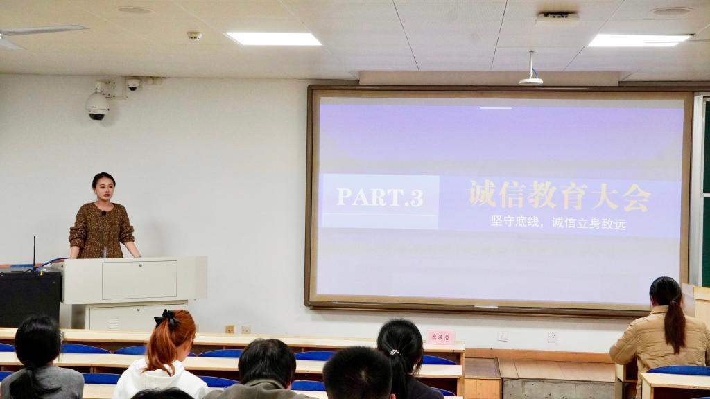 学生纪律处分条例和真实案例,提醒同学们务必诚信应考,以真实水平检验学习成果。在日常事务管理方面,寇老师对课程和外出请假的规范流程及晚报平安和晚熄灯管理要求进行了重点解读。
