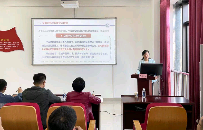 研究生教育现状与改革举措这四个方面进行了讲授。朱学红副校长首先传达了习近平总书记对研究生教育工作作出的重要指示精神和李克强总理的批示精神,以及孙春兰副总理和陈宝生部长在全国研究生教育会议上的讲话。随后,她详细讲解了明升M88