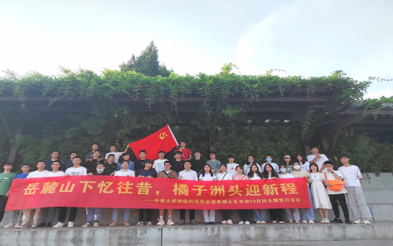 地质资源系硕士生党支部在橘子洲开展了以“岳麓山下忆往昔,橘子洲头迎新程”为主题的党日活动。旨在通过本次党日活动深入学习贯彻中国共产党第二十次全国代表大会精神,缅怀伟人丰功伟绩,传承革命先辈伟大精神,同时让支部同志在学习科研之余参加户外活动,以促进支部同志间的交流和沟通,丰富校园文化生活,增强支部凝聚力和战斗力。党支部全体党员、发展对象及积极分子共计39人参加了本次主题党日活动,支部书记康逊老师莅临指导。