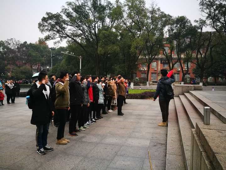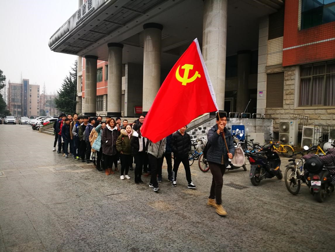 活动的最后一项便是新党员宣誓,党员们排着整齐的队伍,在党旗的带领下,一同步行前往东方红广场。