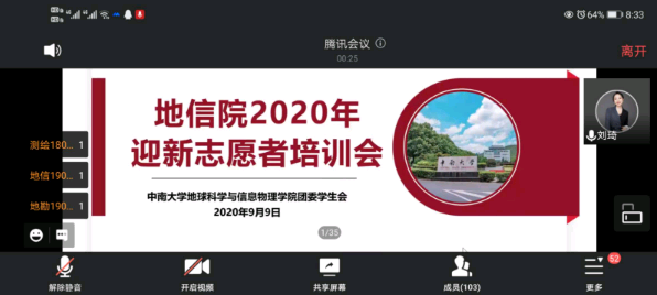 2020年迎新志愿者培训会通过“腾讯会议”方式顺利进行。院团委书记、2017级辅导员刘琦老师出席并主持会议,2020级辅导员杨晨雨老师和杨通田老师出席会议,2020年所有迎新志愿者参会。