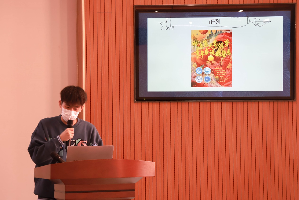 随后,韩世博同学围绕团支书工作职责与《团支部工作手册》填写注意事项展开讲解。内容包括基层团组织建设、团支部手册相关要求、团支部考核细则、智慧团建常用功能等。