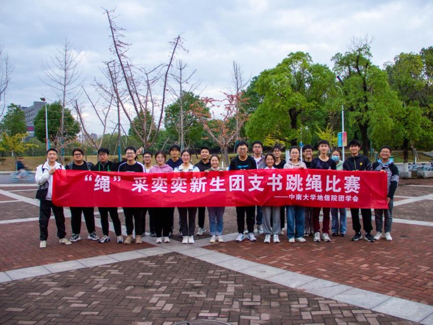 最后,在各位团支书与活动组织人员的欢声笑语中,所有在场人员手持横幅合影留恋,跳绳比赛至此圆满结束。