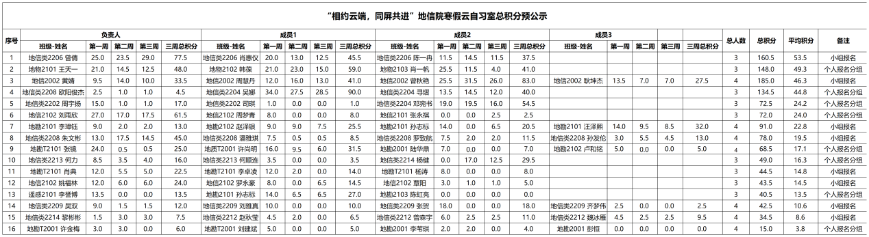 至此,此次寒假云自习活动圆满结束。此次云端自习室活动通过线上的有效监督,积极引导同学们全身心地投入到自律学习中,提高了同学们的学习自制力和学习效率,为同学们顺利通过学期初的课程考试奠定了基础。