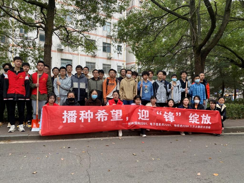 地信类2208团支部、电子信息类2205团支部和材料国际2201团支部联合组织的“播种希望,迎‘锋’绽放”三月学雷锋植树志愿活动在明升M88