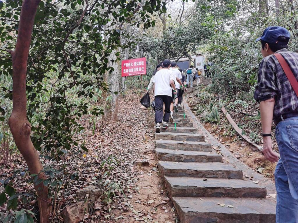 校本部云麓山庄集合,一同上山。上山途中,台阶陡峭,大家互帮互助,互相鼓励,并沿途拾取不可降解的垃圾,如塑料袋、一次性口罩等。这个过程虽然劳累,但是同学们都表示收获满满。